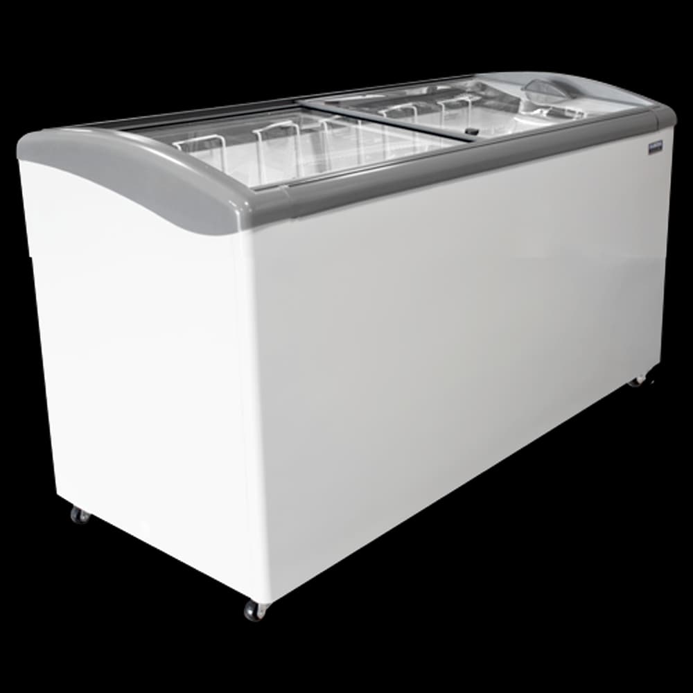 Bunker Freezer NBH-60 (Ojeda USA). Key features: - R-290 Refrigerant - Steel Construction - Sliding Lids - High Impact ABS Frame - Adjustable Thermostat - Internal LED Lighting - Casters - Top Light Bar. Specs: - Operating temperature: Low temp: -10°F to 0°F. - Dimensions: 60.4" W x 26.4" D x 34.3" H - Net capacity: 16 cu ft - Energy consumption: 2.95 kWh/24h - Electrical: 120V, NEMA 5-15P, 4A